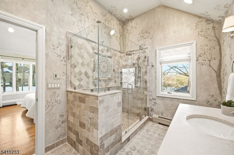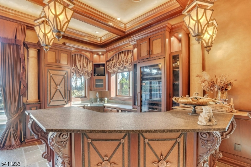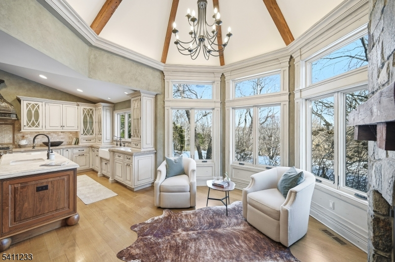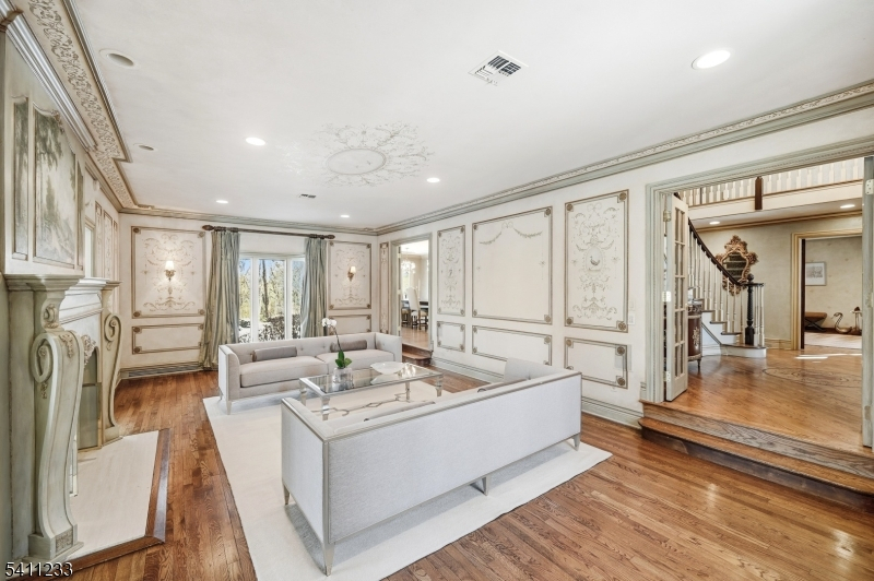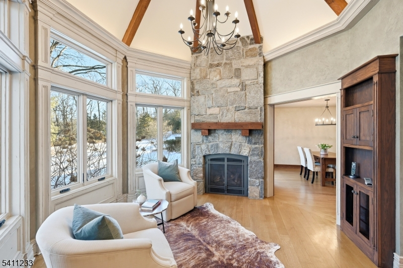 Breathtaking in every way, this extraordinary Manor Colonial is set on 2 private, tree-lined acres. With 8,000+ SF of refined living space, this home delivers architectural distinction & seamless indoor/outdoor luxury. A dramatic foyer introduces expansive formal living & dining Rms, a private Library/Home Office & a sophisticated Family Rm w/ vaulted loft & casual dining. A sun-drenched Sunroom captures tranquil views of the manicured grounds. Hand-painted murals & custom wood cabinetry elevate the interiors. The 2008 expansion transformed the home into an entertainer's dream, adding a spectacular Great Room with custom bar & a window wall opening to an elegant stone patio w/ outdoor fireplace. Home also includes a Gym, Game Room with bar, sitting rooms, and a private au pair suite, all thoughtfully positioned for comfort & privacy with dual staircases. The Chef's Kitchen is exceptional, featuring 2 islands, fireside sitting area and professional grade Wolf & SubZero appliances. Outdoor living is a private resort: heated gunite pool, spa, natural waterfalls, Koi pond, rustic pergola & multiple stone patios. The epoxy-finished garage includes 2 EV chargers. Modern amenities include Central Vac, sprinkler, Savant audio/video system & a gigabit hardwired network throughout. A rare offering where craftsmanship, technology, and resort-style amenities converge, this is luxury living on an extraordinary level & a property that must be experienced to be fully appreciated.