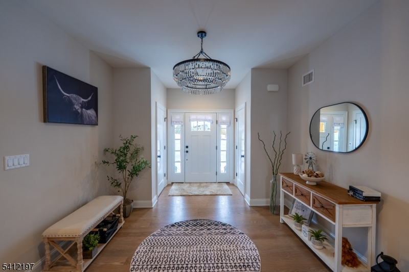 THIS EXQUISITE 2-YEAR-OLD CUSTOM RANCH CAPTURES ELEGANT COUNTRY LIVING BLENDED WITH MODERN SOPHISTICATION. Designed for refined single-level living, this thoughtfully crafted home offers comfort, craftsmanship, and a tranquil setting.A sweeping approach reveals striking architectural presence. Inside, natural oak hardwood floors, soaring 16-foot vaulted ceilings, grand great room creates warmth and understated luxury. A wood-burning fireplace with a custom shiplap feature wall anchors the space, perfect for intimate evenings or gracious entertaining.Gourmet country kitchen features granite countertops, premium stainless steel appliances (all 2 years old), a generous pantry, and an expansive breakfast bar flowing into a sunlit dining area ideal for gatherings.Sliders open to a private outdoor retreat with a newly installed in-ground heated pool, manicured grounds, and a spacious deck complete with privacy wall, ambient lighting, and powered awning for seamless indoor-outdoor living.Primary suite offers hardwood floors, a walk-in closet, and a spa-inspired bathroom. 3 additional bedrooms, a mudroom with first-floor laundry, and recessed lighting complete the main level.A full walk-out basement offers endless expansion possibilities. A 3 car garage, stone pillars, split-rail fencing, and curated landscaping enhance the estate setting.With 8 years remaining on the builder's warranty, this exceptional property offers modern luxury in a timeless country setting.