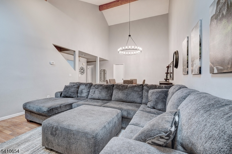 A fabulous Fernwood model in the sought-after Woodlands condo complex. Lowest taxes and HOA fee in the community. Oversized 2 car garage with newer door/ unit shows beautifully...kitchen has breakfast nook and large pantry....living/ dining room / primary bedroom / fireplace/ bar / on one floor walkout to large deck and privacy backyard / walk up a flight to a second bedroom, full bath and huge closet for storage. Lower level has 2 rooms : family room and office at garage entrance. All furnishings are negotiable. Full service clubhouse with fitness center and pool for summer enjoyment . Tennis and pickleball courts. Walk to Jitney for NYC transportation and houses of worship.