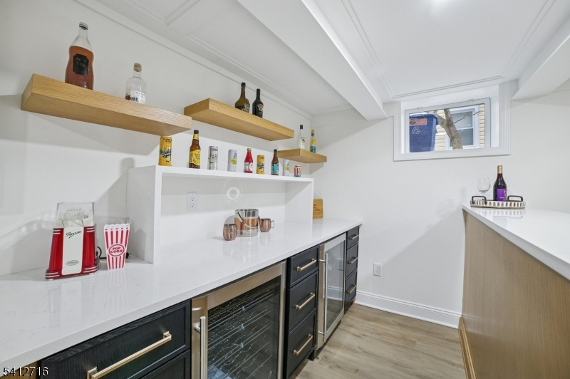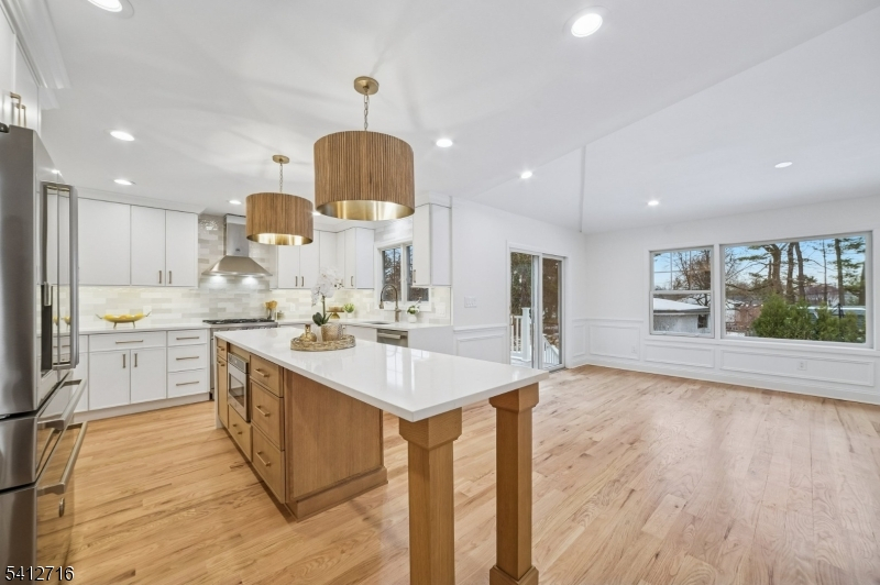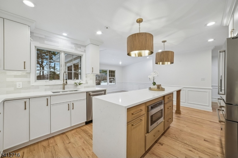 Beautifully Renovated Custom Colonial with a Welcoming Wrap-Around Porch, located on a quiet, dead-end street. Modern Luxury and Classic Charm. Hardwood Floors Throughout. Living Room features a wood-burning fireplace w/Detailed Mantle and an Impressive Formal Dining Room with Coffered Ceilings. The Updated Chef's Kitchen offers high-end SS Appliances, Quartz Counters, Center Island w/Seating and new Cabinetry. Family room with Vaulted Ceilings and Sliding Doors leading to a Deck overlooking a Level Backyard. Convenient first-floor bedroom or home office and a full bath, plus a Mudroom with Storage and attached Two-Car Garage. A second floor Luxurious Primary Retreat with Two Walk-in Closets and a Spa Bath w/ Soaking Tub, Double Vanity, Water Closet and Oversized Shower. Three additional Large Guest Bedrooms, Hall Bath, Linen Closet and Access to Walk-up Attic with Plenty of Storage. The Finished Lower Level expands your living space with two Recreation Rooms, Oversized Laundry Room, Custom Shelving and an Entertainers Dream Bar w/Quartz Counters, two Wine Refrigerators, Custom Cabinetry and direct access to Backyard. This Turnkey Home blends Thoughtful Updates, Spacious Living and Premium Finishes in one of North Caldwell's finest locations. Note: Wood Burning Fireplace AS-IS.