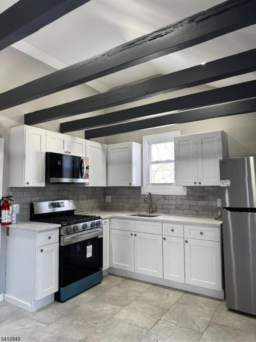 This beautifully renovated 2 bedroom 1 bathroom unit is available for lease in the heart of Rahway. It includes a versatile attic bonus room, a brand new kitchen with quartz counters and subway tile backsplashes, and a bathroom with marble-veined tile. The property offers off-street parking (one side of the driveway per unit) and a shared yard. Conveniently located near the Rahway Train Station, it's an easy commute for residents.