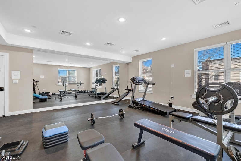 Perched on the top floor in the vibrant Jersey City Heights neighborhood, this sun-drenched duplex residence offers a perfect blend of space, light, and modern comfort. Oversized windows fill the home with natural light, creating an inviting and airy atmosphere throughout. The main level features an elegant open-concept living and dining area seamlessly connected to a stylish kitchen with a sleek quartz breakfast bar, ideal for entertaining or casual dining. Rich hardwood floors flow throughout the home, complemented by central HVAC with a Nest thermostat for effortless climate control. A full bathroom completes this level. The lower level offers two spacious bedrooms, a second full bathroom, and a convenient laundry and storage area, providing both comfort and practicality. Located just steps from Central Avenue and Journal Square, residents enjoy easy access to a dynamic mix of boutique shops, caf s, restaurants, and convenient transportation options to Manhattan. The building enhances the lifestyle experience with premium amenities, including a fully equipped fitness center and an impressive rooftop terrace showcasing breathtaking panoramic views of the New York City skyline. A rare opportunity to enjoy penthouse-style living, exceptional light, and an unbeatable Jersey City location. PROFESSIONAL PICTURES will be up next week.