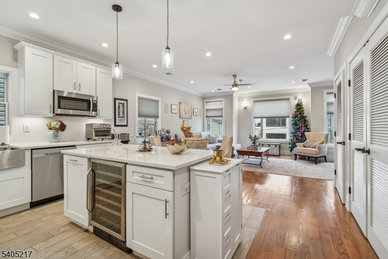 Move right into this stunning condo! Featuring three bedrooms, two baths, parking for two cars, wide crown molding, hardwood floors, custom kitchen and an island with quartz countertops, stainless steel appliances and a wine cooler. Gorgeous spa-like baths with multi jets and shower sprays. Pella transom windows for generous natural light, tankless hot water system, central vacuum, camera security and video intercom door bell. Private 750 square foot rooftop terrace with sound speakers, electric, water and gas line increasing your outdoor enjoyment and eastern NYC view and mountain vistas to the west. Located in JC Heights on a residential city street and low HOA. Conveniently close to NYC transportation, bus to Journal Square PATH or a stroll through the park to the Light Rail Station.