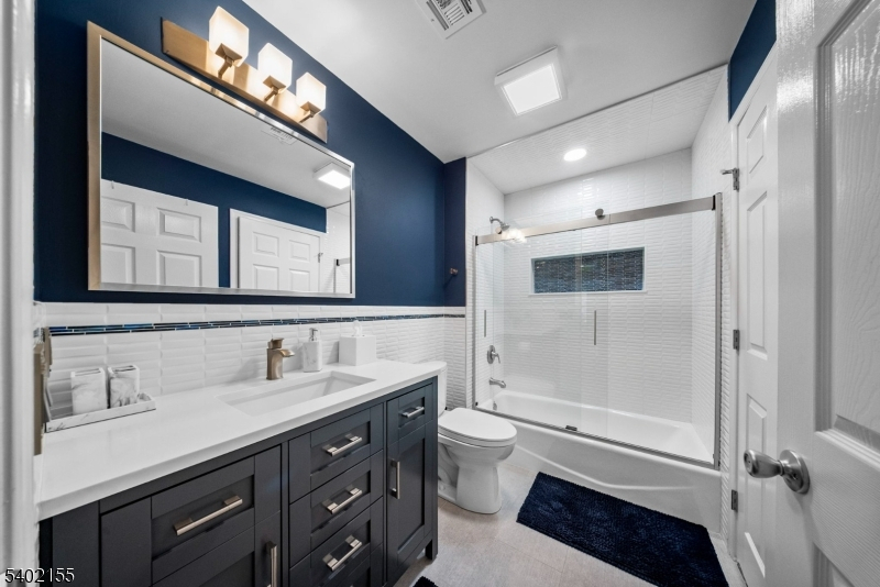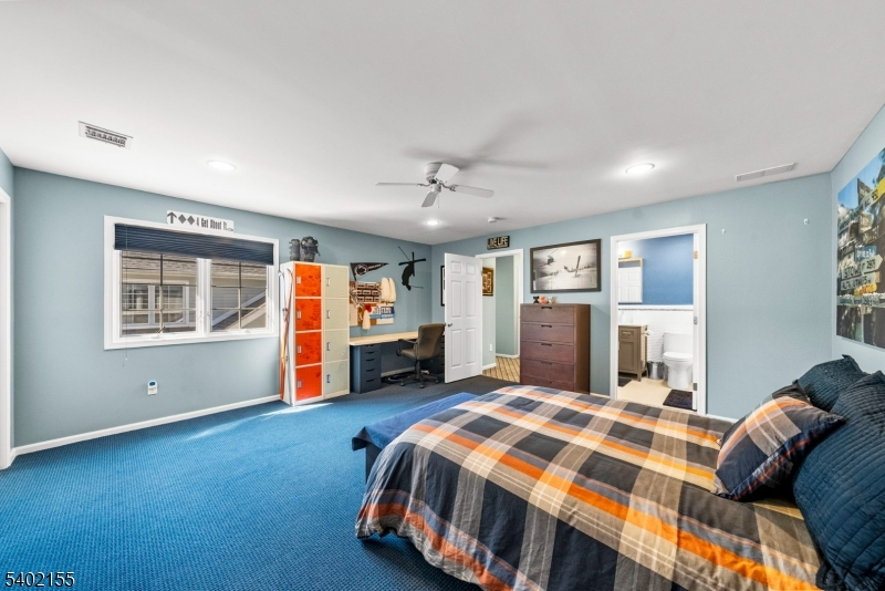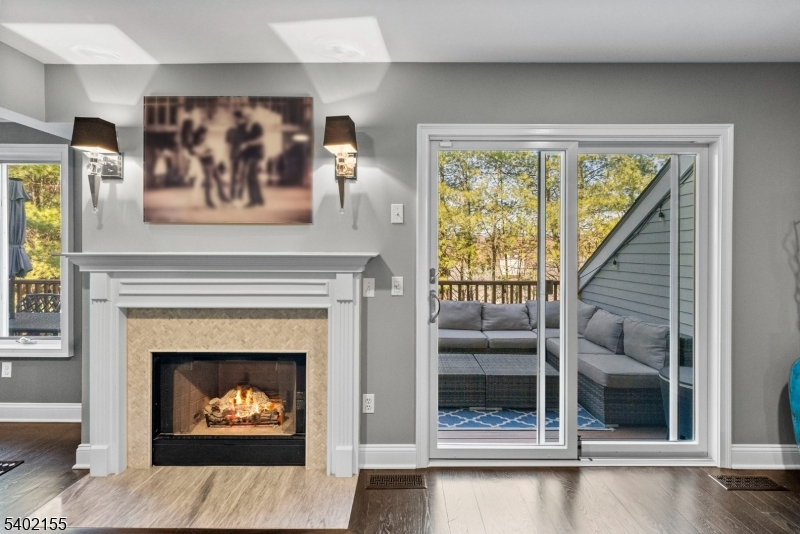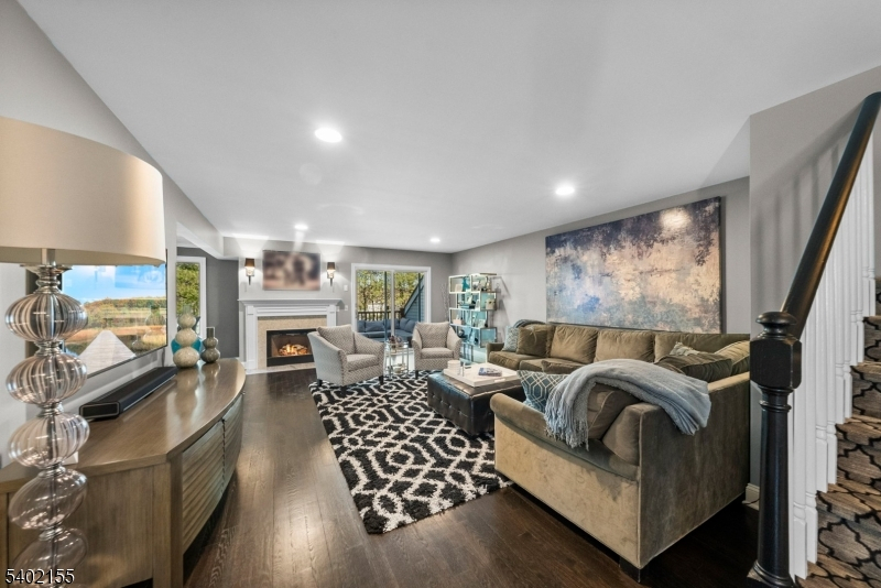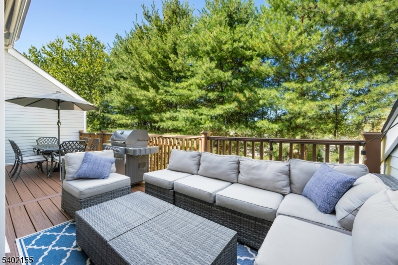 This beautifully updated 3 bedroom, 3.5 bath home offers modern upgrades, smart home features + exceptional indoor & outdoor living. The entire 1st floor has been thoughtfully renovated and features a stylish eat in kitchen with quartz countertops, Samsung Chef Collection appliances + 2 custom built in pantries. Hardwood floors run throughout the main level, and a gas fireplace with marble hearth anchors the living space.The 1st floor also includes a formal dining room, powder room, dedicated office/den and convenient laundry room. Upstairs, the 2nd level features newer carpeting throughout, custom built in closets in all 3 bedrooms and a fully renovated hall bath. The spacious primary suite offers beautiful views, stunning sunsets + a large walk in closet. The fully finished walkout basement expands the living space and has a full bath, patio access and a separate room ideal for an office, gym, or guest space. Outdoor living includes an extended Trex deck, the largest permitted for the community, with a gas line for grilling + an electric awning. The private backyard offers additional space + privacy. Additional highlights include: 2 car garage, Tesla EV charger, Andersen sliding door with UV protection, smart garage opener, Schlage smart locks, water softener, reverse osmosis system, newly paved driveway + 4 year young roof. Changebridge at Montville is a fabulous community with all the amenities, pool, clubhouse, play area, and newly installed tennis and pickleball courts.