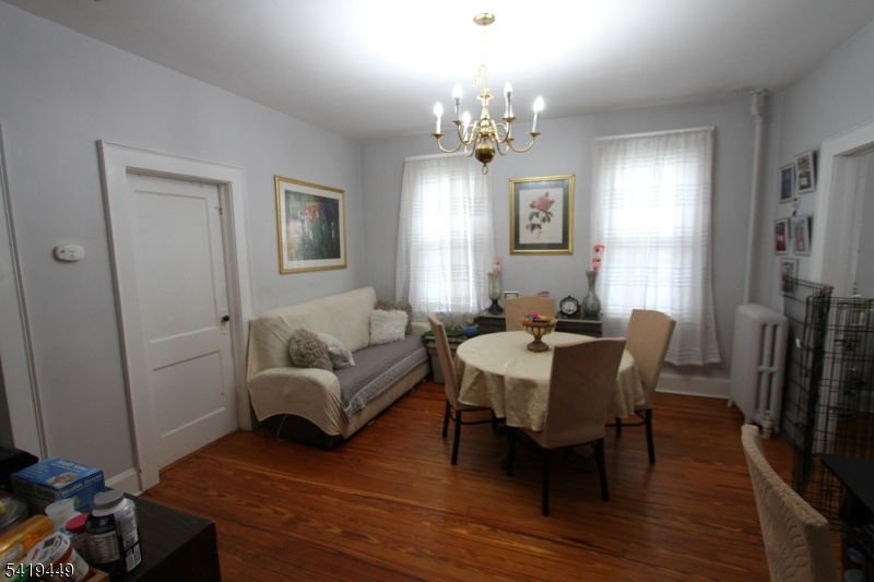 Low maintenance vinyl sided 2 family home ideally located with ease of transportation to NYC via buses on nearby corner. Nice and bright apartments with natural light and high ceilings. Front open porches! Separate gas heat and separate electric service. Both apartments are almost identical: large living room and dining rooms! Two bedrooms and partially tiled bathrooms. Huge walk-up attic from common second floor hallway. Type of wood floors as shown and where existing. Very reasonable taxes compared to most Bergen County towns.