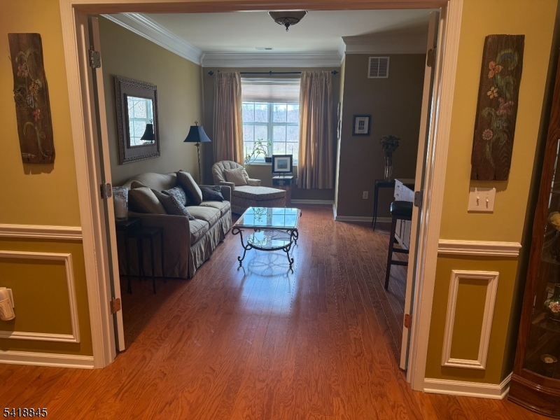 Fabulous 2119 SF Westbrook end-unit in Wanaque Reserve, a Del Webb 55+ community, is in the newest building. This move-in ready home boasts hardwood flooring and a spacious 20x20 primary bedroom ensuite featuring a full bath, tray ceiling, and two walk-in closets. There's also a second bedroom, full bathroom, eat-in-kitchen with stainless steel appliances, granite countertops and a tiled backsplash. The living room, dining room, and den are highlighted by French doors for added elegance, and the living room's sliding doors lead out to a private balcony with seasonal views. Additional features include a larger den & laundry room, upgrades such as three pot drawers. extra upper cabinets, a laundry area with countertop and cabinetry, wine refrigerator, new hot water heater, and new refrigerator. The home comes with two deeded parking spaces, a 6x10 storage unit on the same floor and 24-hour security. Residents enjoy access to a 20,000 SF clubhouse offering amenities like a cafe, ballroom, gym, theater, sauna, indoor and outdoor pools, plus more than 45 clubs & activities, including travel club (cruises, trips, casino outings), tennis, pickleball, canasta, poker, golf, and more. WR provides residents with a luxurious lifestyle focused on modern comforts, security and community spirit. Recent renovations have created a fresh, updated living environment.