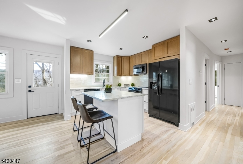 Completely renovated from top to bottom, this move in ready home is located in West Milford, just 2 blocks from High Crest Lake,.The house was fully gutted and redone inside and out. Updates include new hardwood floors, walls, windows, siding, gutters, roof, plumbing kitchen, bathrooms and more. The home also has brand new central air, and the heating system is oil (above ground) located in the garage.The main floor has 3 bedrooms and 1 full bathroom, which includes both a shower and a tub. The primary bedroom has 2 closets. The kitchen and living room are open concept and include an electric fireplace, along with completely new appliances.The finished basement adds extra space and includes 2 additional rooms, 1 full bathroom, a laundry area with hookups, a mechanical room, and a separate entrance from the back, transform the basement into endless possibilities. It also has direct access to the garage. The septic system was serviced in December 2025. Long driveway offering plenty of parking.A great opportunity to own a fully renovated home in a quiet area near the lake. Wood burning fireplace in the basement and septic system being sold as is (no known issues), Septic recently serviced in December 2025. New owners have the option to become members of the lake community and have access to all the lake activities if desired.