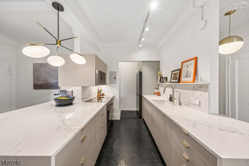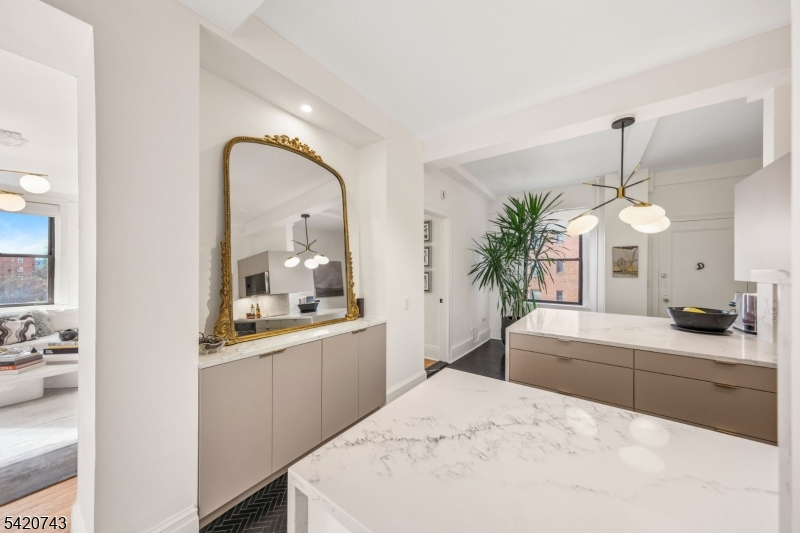 Rare corner residence in one of Forest Hill's most distinguished landmark buildings. This beautifully updated 3-bedroom, 2-bath home blends historic elegance with modern convenience across approximately 1,343 square feet of light-filled living space. With North, South, and West exposures, sunlight pours in throughout the day, culminating in a breathtaking golden-hour sunset drenched living room and stunning views of downtown Newark, the Cathedral, and parts of NYC. Architectural details abound, including 9-10 ft ceilings, picture-rail molding, decorative fireplace, and newly refinished hardwood floors. The brand-new kitchen includes quartz counters & Samsung/Bosch appliances, while custom closets/built-ins provide exceptional storage. Both bathrooms have been previously updated and are well maintained, offering comfortable, move-in-ready convenience. A rare secondary entrance off the kitchen provides convenient access to the rear elevator with direct service to the basement level. You will enjoy a full suite of amenities, including deeded garage parking, private storage unit, on-site laundry, and fitness room. The building offers high-tech monitored security and video access via smartphone for added peace of mind. Ideally located just blocks from Branch Brook Park-home to the largest collection of cherry blossom trees in the United States. Minutes from NJPAC, vibrant downtown Newark, and Newark Penn Station, providing a 20-minute commute to Manhattan. Welcome Home!