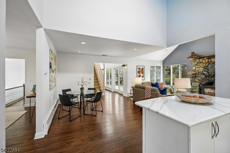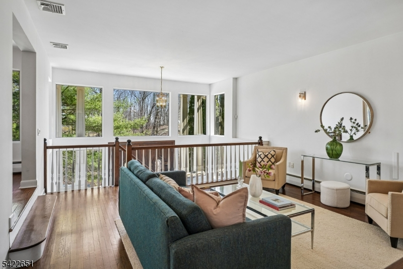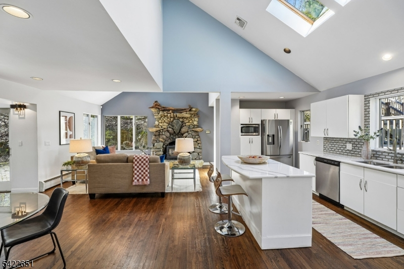 Welcome to this light-filled, design-forward home in the highly sought-after High Crest Lake community. This inviting residence is defined by vaulted ceilings, expansive windows, and skylights. A perfect blend of indoor and outdoor living, featuring views of the lush surroundings. On the first floor, you'll find gorgeous oak hardwood floors and a desirable open floor plan, with a spacious living room and formal dining room, both framed by picturesque treetop views. The newer eat-in kitchen features stainless steel appliances, a large center island, granite countertops, & convenient breakfast area. An impressive stone fireplace anchors the adjacent family room, creating a warm and inviting space, all with direct access to an outdoor patio perfect for al fresco dining. The generous first-floor primary is a true retreat, featuring a newly renovated ensuite bath with a soaking tub, separate shower, double sinks, and a walk-in closet. The second floor hosts three additional bedrooms, a laundry center and two bathrooms. At the top level, is a stunning bonus room with dramatic views ready to fit your lifestyle, whether a home office, art studio, game room or another bedroom, For some fun-filled days you have the opportunity to join the HIgh Crest Lake Club. Conveniently located near routes 23 and 287. Welcome home!