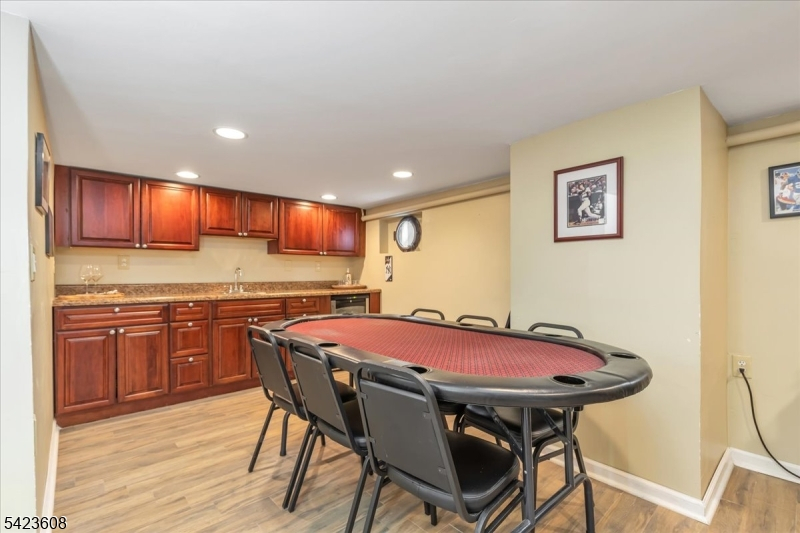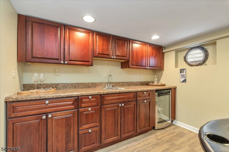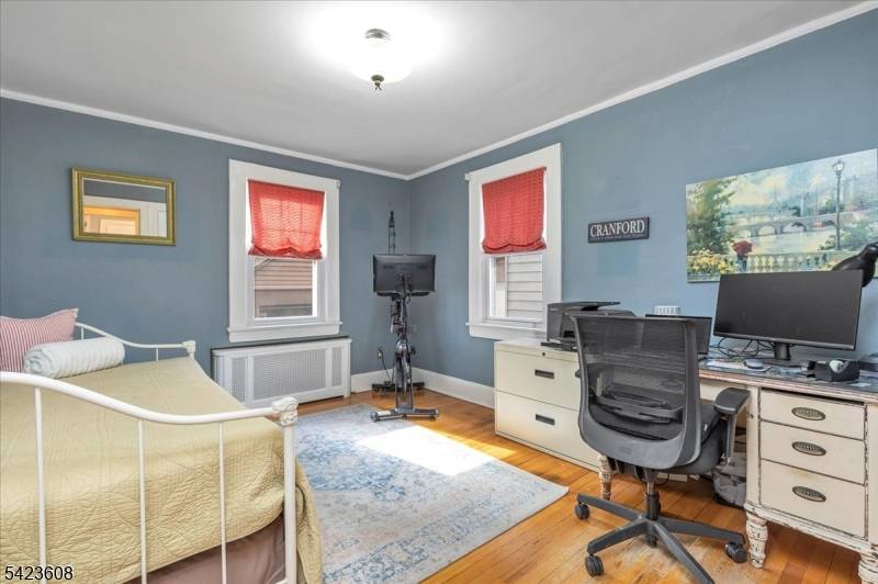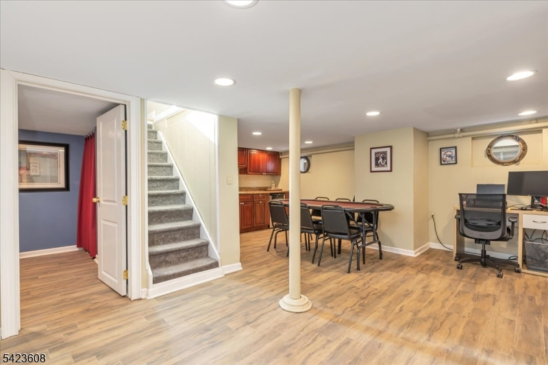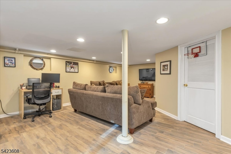 Welcome to this light-filled Tudor-style home offering timeless character and a spacious, flexible layout. A charming stone front patio provides the perfect spot to relax and enjoy the neighborhood. This lovely home features three bedrooms and one full bath plus two half baths and two convenient first-floor bedrooms. The second floor has an expansive bedroom and powder room with ample closets for additional storage.The inviting living room showcases oak hardwood floors and a decorative fireplace, flowing seamlessly into the dining room. The galley-style kitchen features granite countertops and stainless-steel appliances, providing both style and functionality. An entry vestibule with a coat closet adds a practical and welcoming touch The finished basement offers exceptional additional living space with a wet bar, wine refrigerator, and whimsical porthole windows, creating a fun and unique atmosphere for entertaining. A laundry area and spacious powder room complete this level. Step outside to a private backyard with a paver patio and a detached one-car garage, ideal for outdoor gatherings or quiet evenings.Perfectly located near dedicated bike and walking paths and close to Orange Avenue School. Roosevelt Park is just two blocks away. Enjoy everything Cranford is known for, including its award-winning downtown filled with restaurants, boutiques, yoga studios, gyms, and a movie theater, along with NYC train and bus service and easy access to major highways.