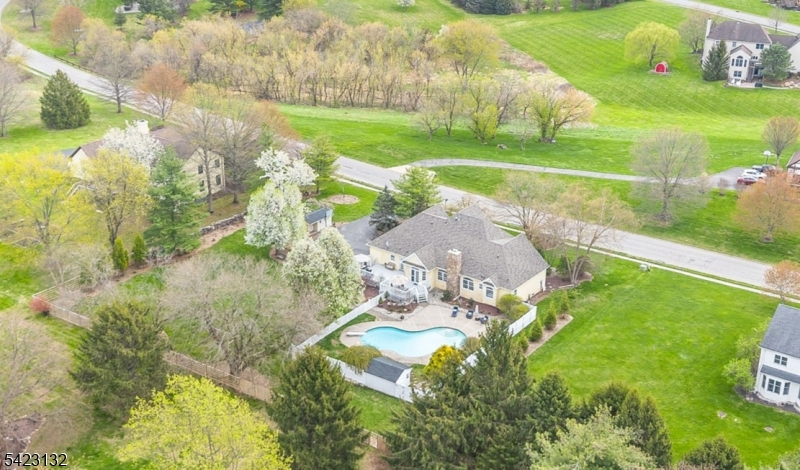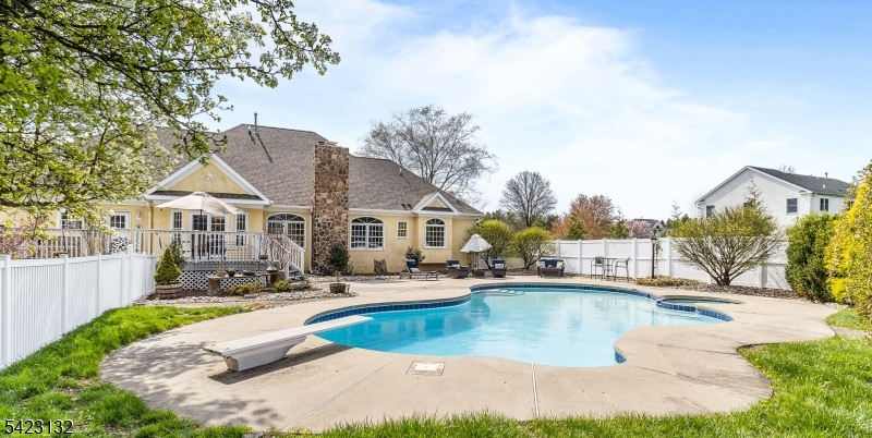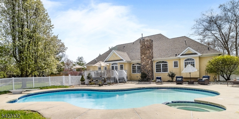 Resort style pool & yard make this custom center hall colonial the perfect summer 2026 destination. The 2 story foyer greets you & your guests with French doors on both sides elevating the formal living room & dining room/ currently being used as a home office and TV room. The Great Room offers views to the backyard oasis, a large brick fireplace & vaulted ceilings adding character & depth. Washed maple cabinets compliment the granite countertops in this center island kitchen with vaulted ceiling dining area & second staircase. The door to the deck is right next to the 2nd powder room & laundry for your convenience. On the other side of the home another powder room & first floor Primary Bedroom suite with oversized bathroom including jacuzzi tub overlooking the pool. Upstairs you will find 3 generous bedrooms, a full bathroom & an oversized bonus room currently used as a bedroom. The basement is full of potential with bathroom plumbing for toilet & shower & several framed out rooms, plenty of storage and open space. The yard offers even more potential with property behind the fenced in pool area and a large fenced in yard big enough for all the fun & gardening you can imagine. Versatile layout/possible multigenerational living. Roof (2024), Chimney (2024), custom wood fencing (2024), shed roofs (2023), Energy Efficient Furnace, both units (2022), Energy Efficient AC, both units (2022), hot water heater (2022), front windows & water softener (2016). Close to shopping